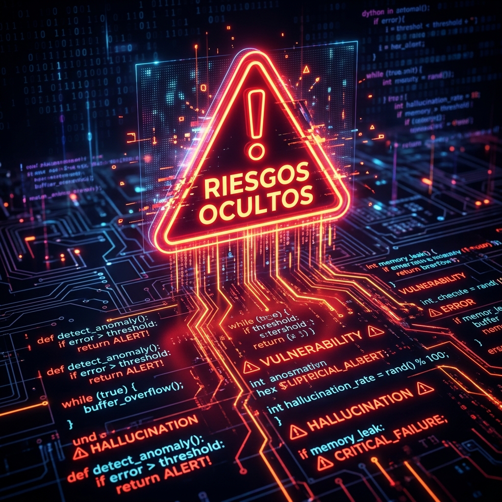 Alucinaciones y Vulnerabilidades de Seguridad: La dependencia ciega en la IA sin verificación técnica puede introducir código inseguro, vulnerable o derechamente inventado ("alucinaciones"). La "complacencia con el código generado por IA" es un riesgo latente, especialmente si los equipos asumen que el código sugerido es seguro por defecto.